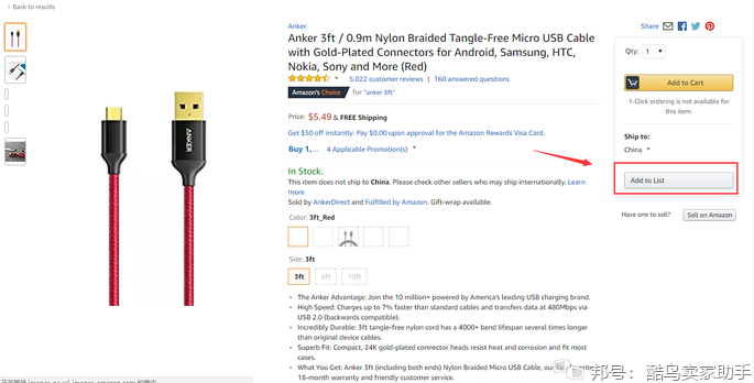 简单粗暴地说,Wish List可以理解为国内购物的收藏清单,类似于淘宝收藏夹。用户在Amazon浏览平台上的产品,看到自己喜欢的产品,但在确定购买之前,可以选择使用产品Add to List,即加入Wish List 。如图: